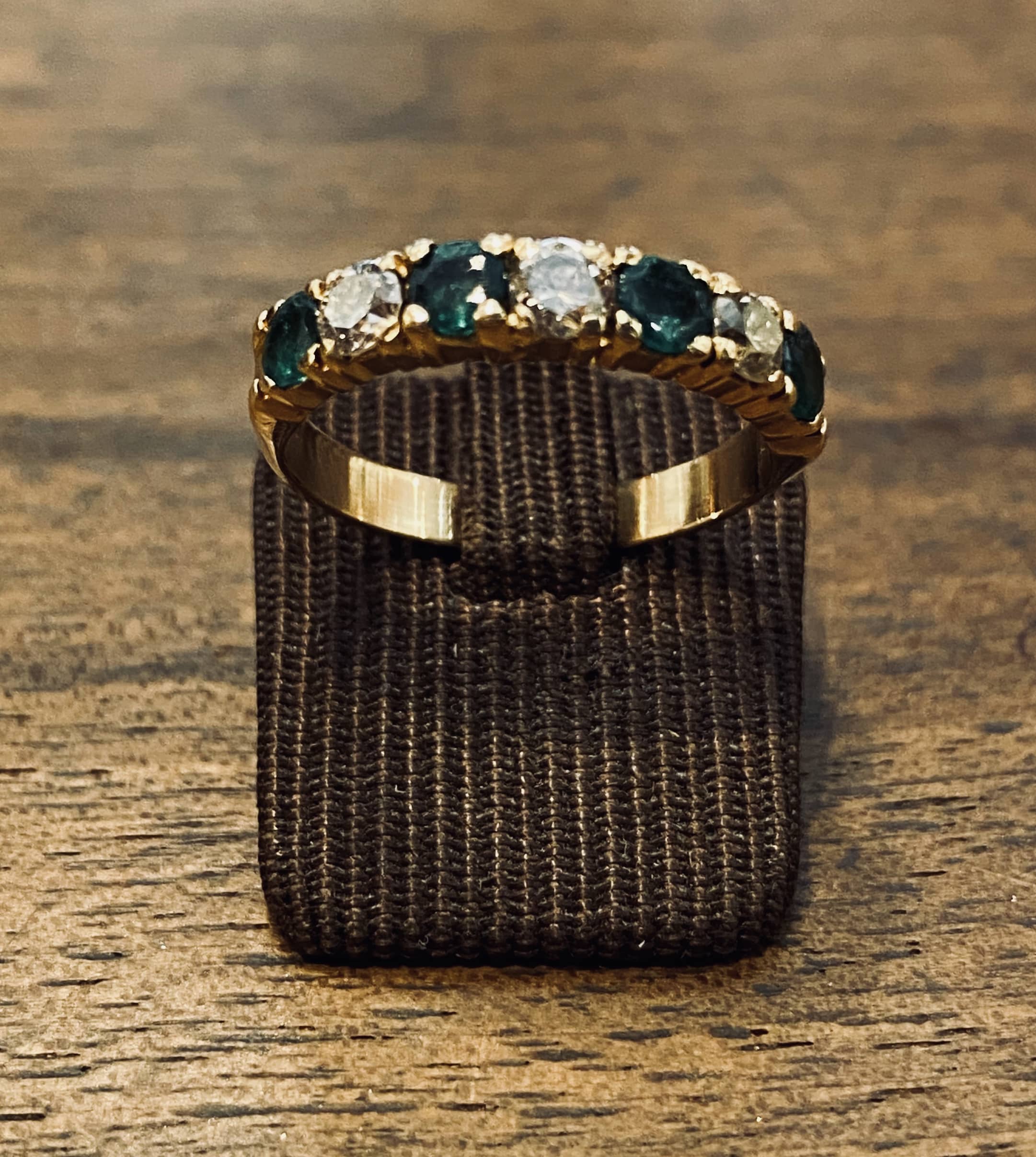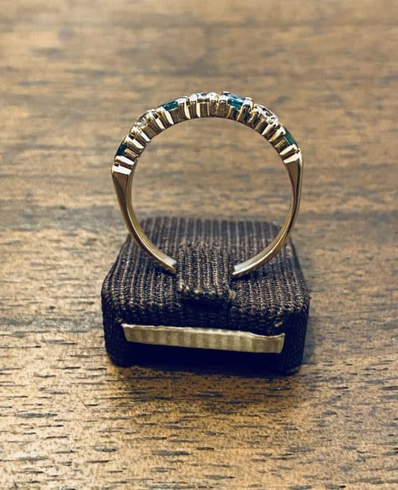 Sublime alliance en or jaune 750 millièmes serti de 4 émeraudes de 0,10 carats ainsi que de 3 diamants de 0,10 carats. Pour faire votre demande ou pour le jour J, cette 1/2 alliance en OR Jaune vous comblera de bonheur.