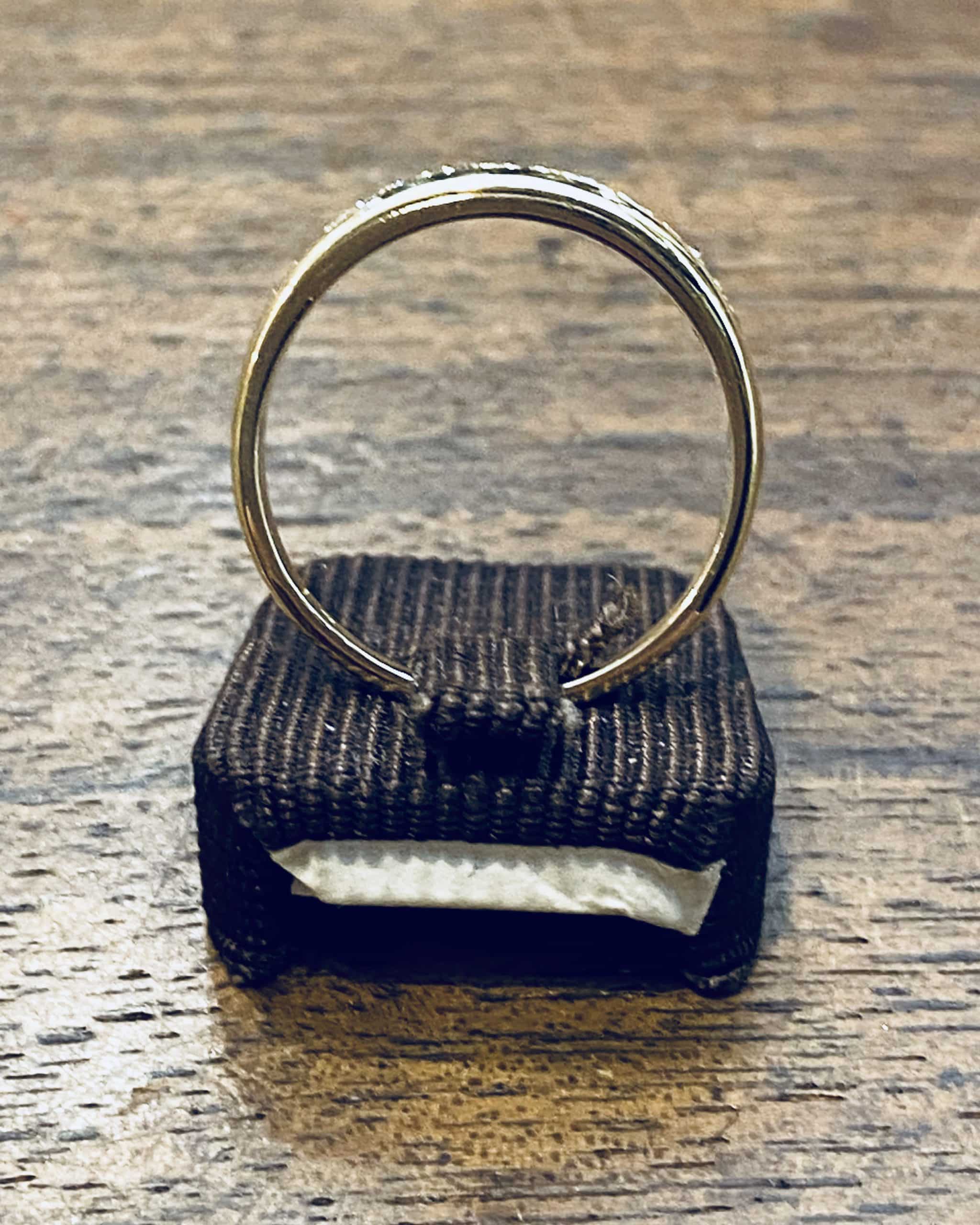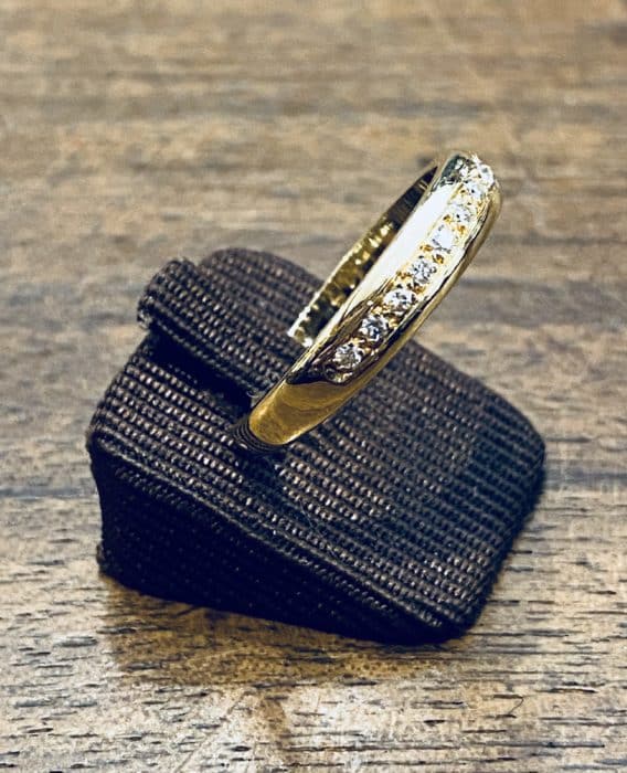 Trés jolie alliance en or jaune 750 milliÚmes serti de 11 diamants de 0,01 carats.