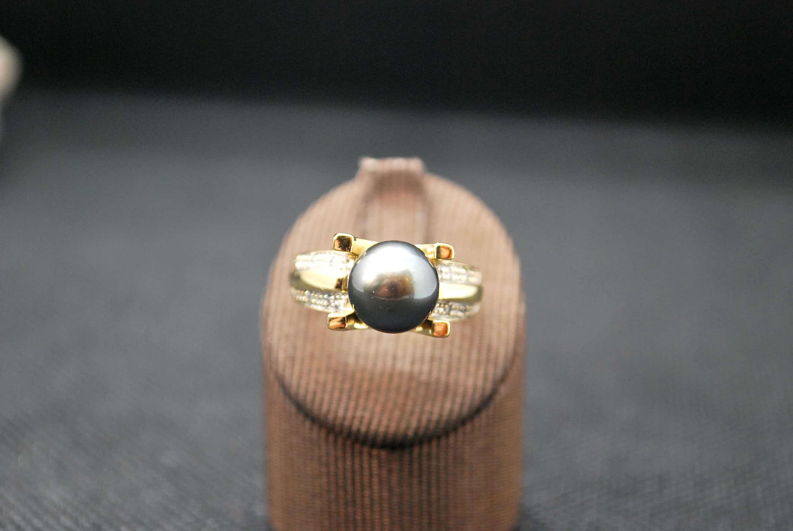 Bague d’occasion en Or Jaune Perle de Tahiti et Diamants