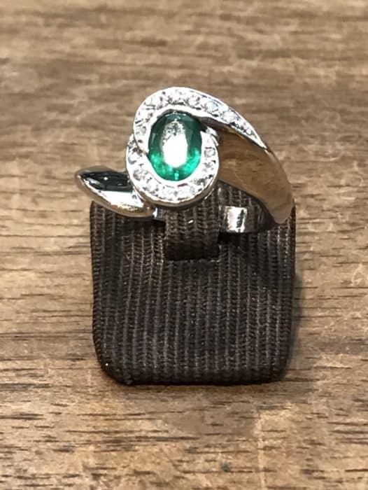 Magnifique bague en or blanc 750 millièmes serti d'un émeraude de 1,10 carats ainsi que de diamants pour un poids total de 0,08 carats.