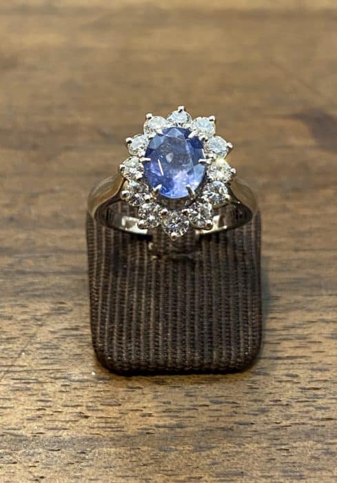 Bague d’occasion or blanc avec saphir et diamants