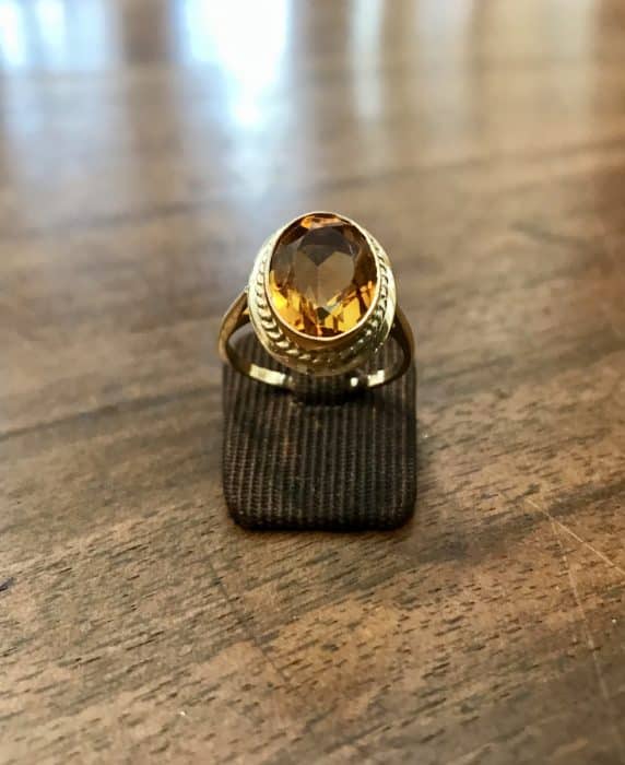 Bague ancienne en or jaune 750 millièmes serti d'un citrine ovale.