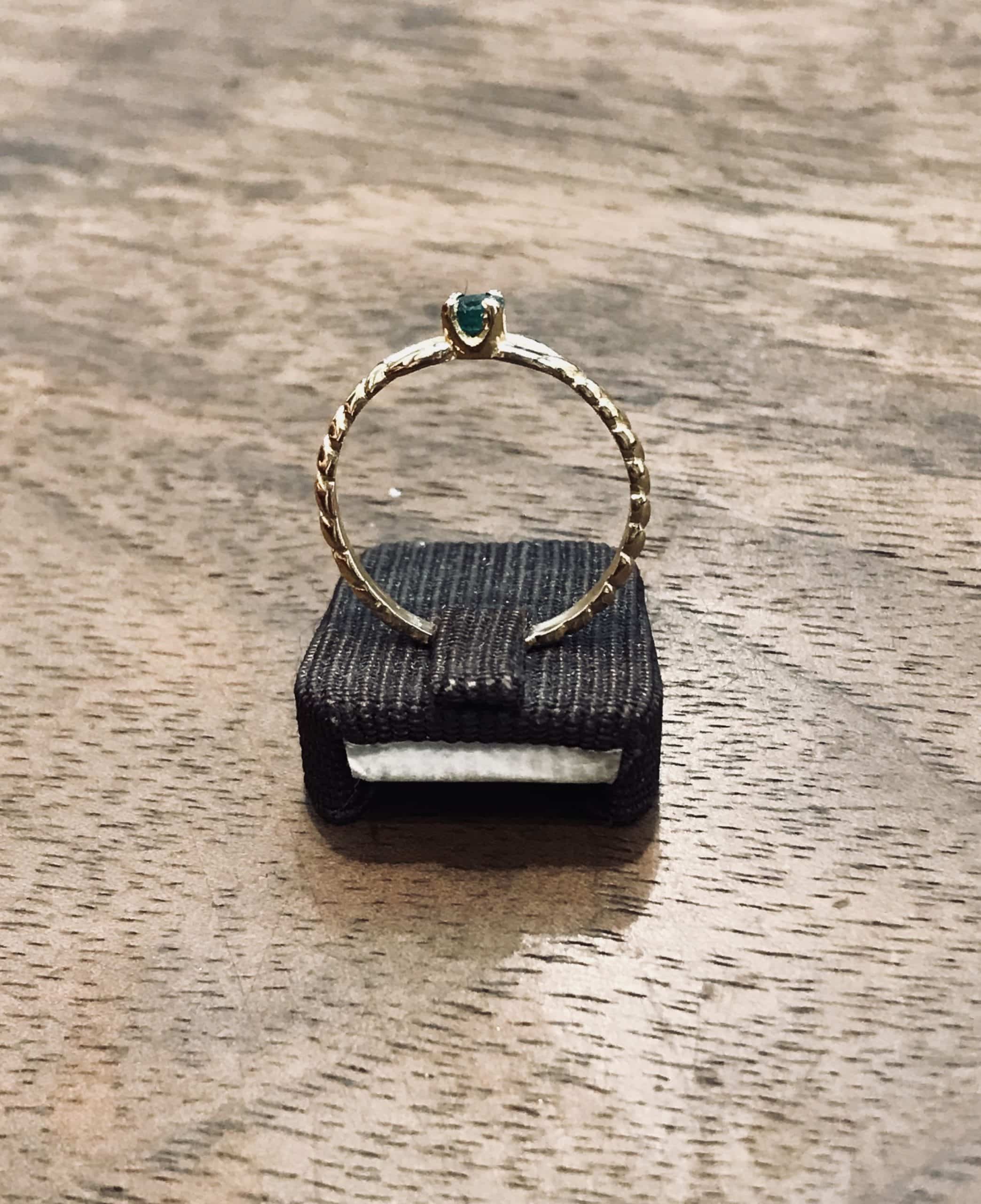 Trés jolie bague en or jaune 750 millièmes serti par 4 griffes d'une émeraude.