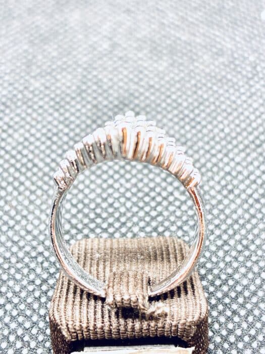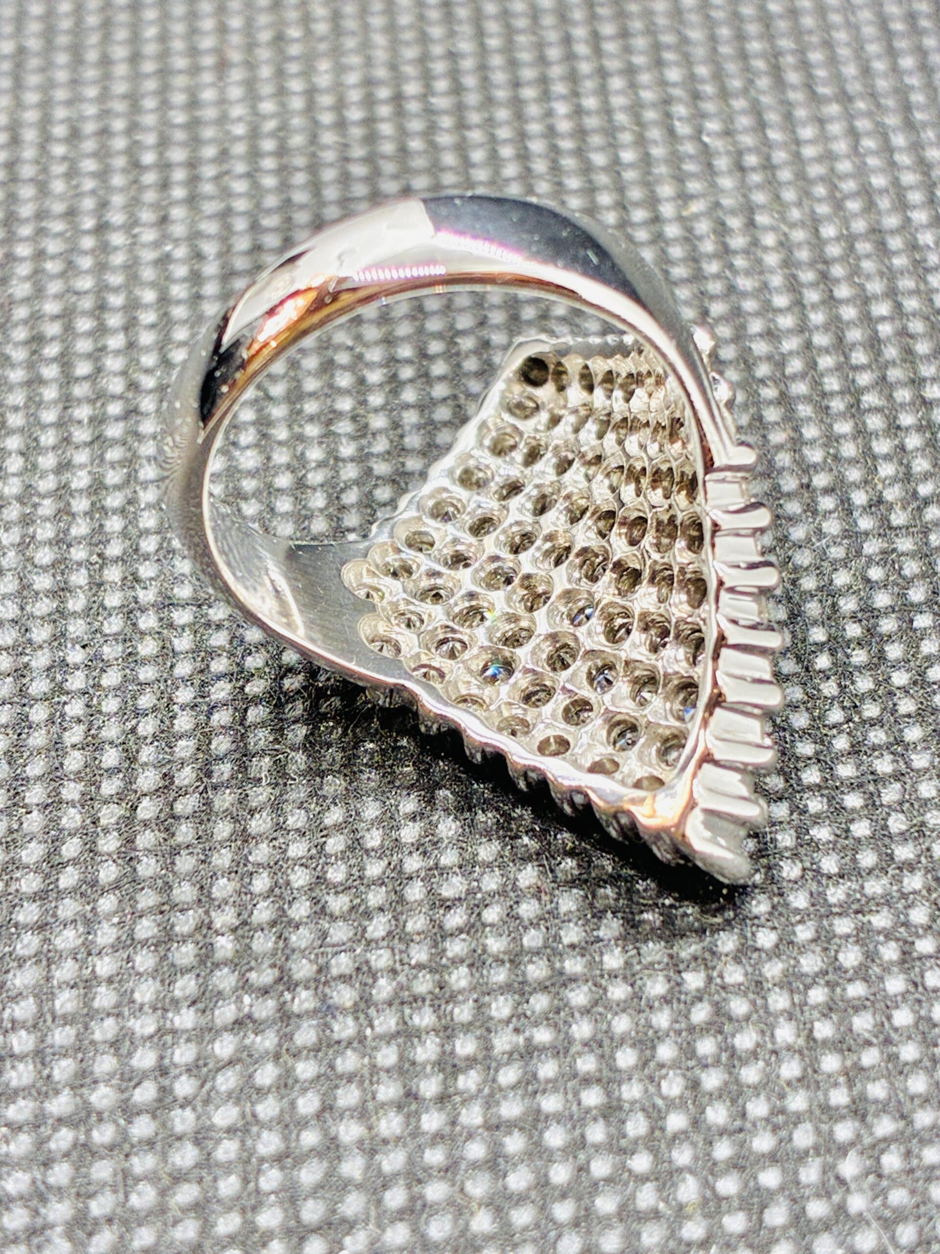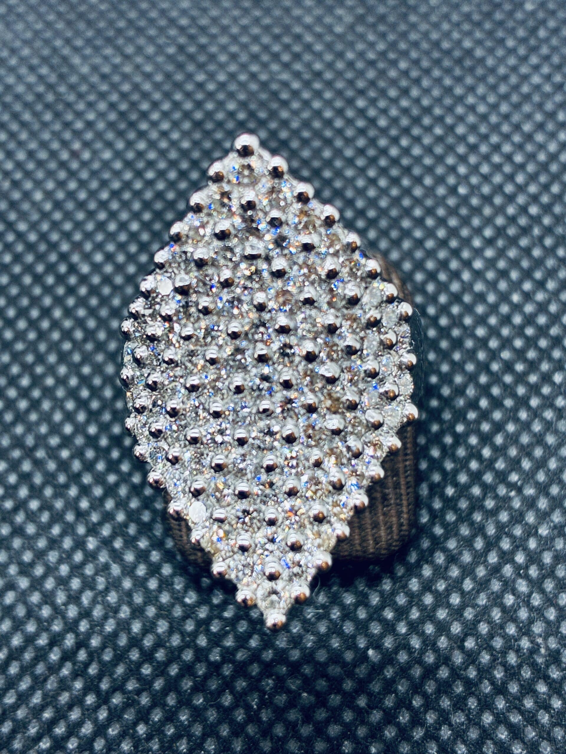Ne passez pas à côté de cette sublime bague et venez vite l'essayer dans notre boutique de Lyon. Bague en Or Blanc 750 millièmes sertie de 80 Diamants de 0,03 carat chacun. Son plateau de forme Losange est légèrement concave ce qui lui donne cette ligne fluide et élégante.