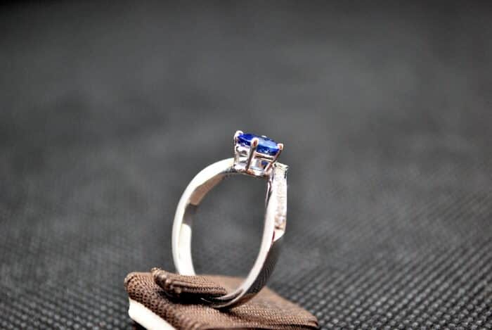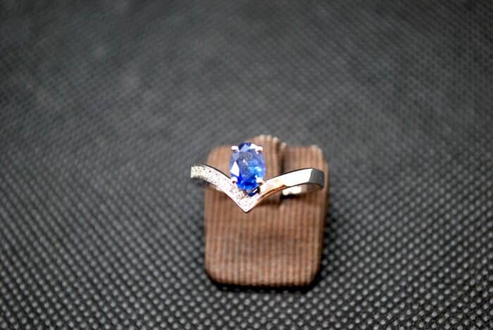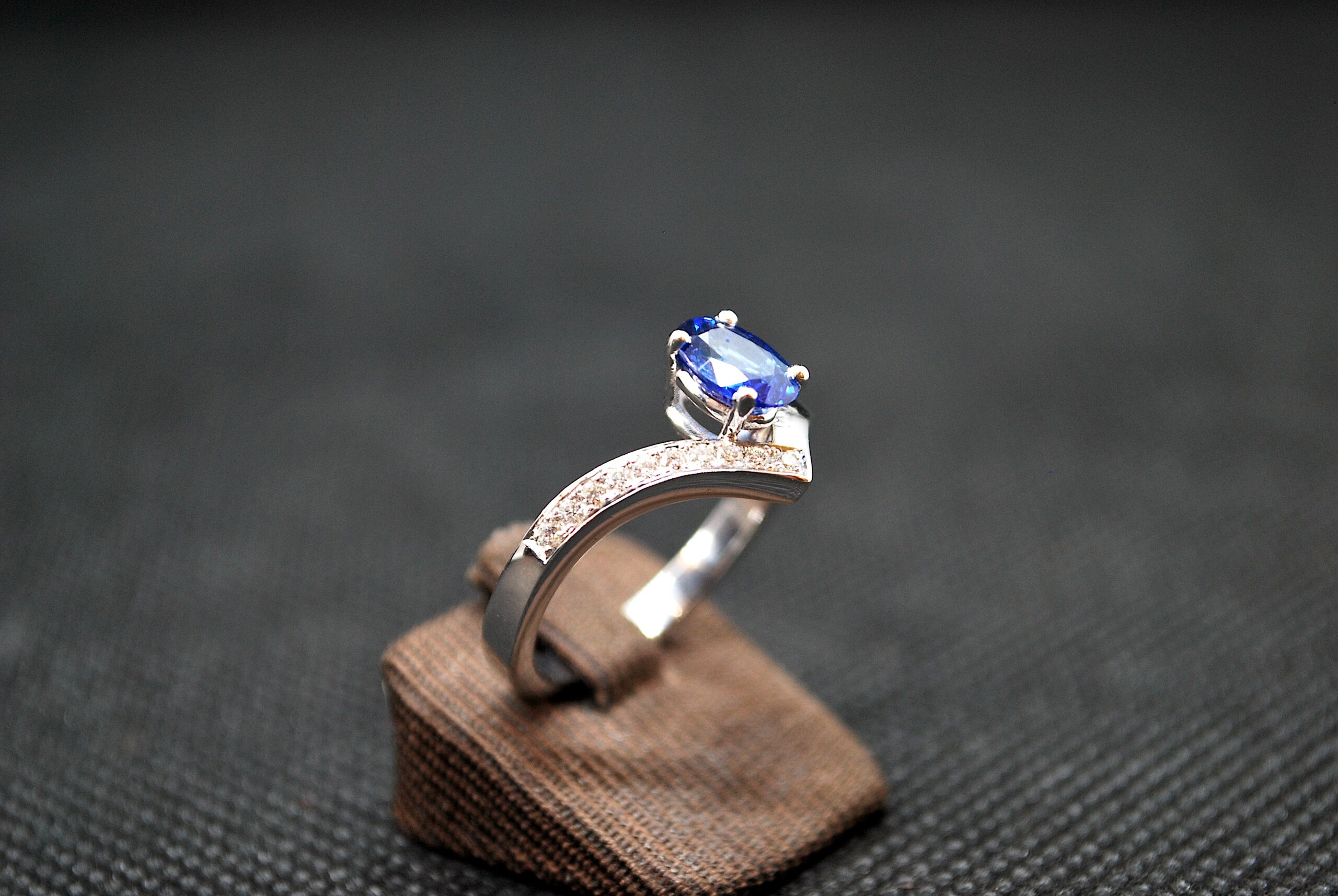 Créé et imaginé dans notre atelier, découvrez cette sublime bague en Or Blanc 750 millièmes sertie d'un Saphir Bleu ovale de 0,92 carat et de 10 Diamants de 0,01 carat chacun de couleur F et de pureté VS. Ce bijou unique saura vous accompagner dans toutes les occasions. Envie d'une autre pierre ou d'une autre couleur d'or? Contactez-nous et créons ensemble le bijou qui vous ressemble.