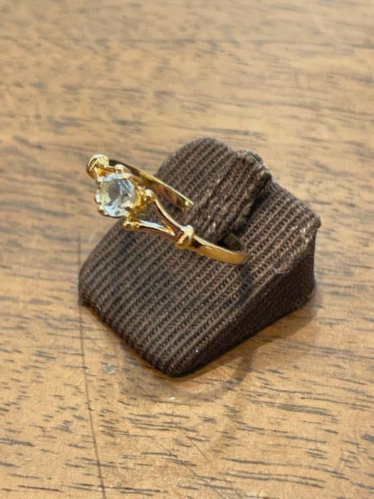 Bague en OR Jaune 750 millièmes sertie d'une jolie Aigue-Marine ronde de 4mm. Les courbes du corps de la bague lui donnent un style aéré, chic et élégant. Cette bague pourra vous accompagner tous les jours.