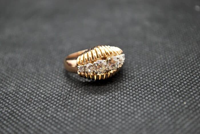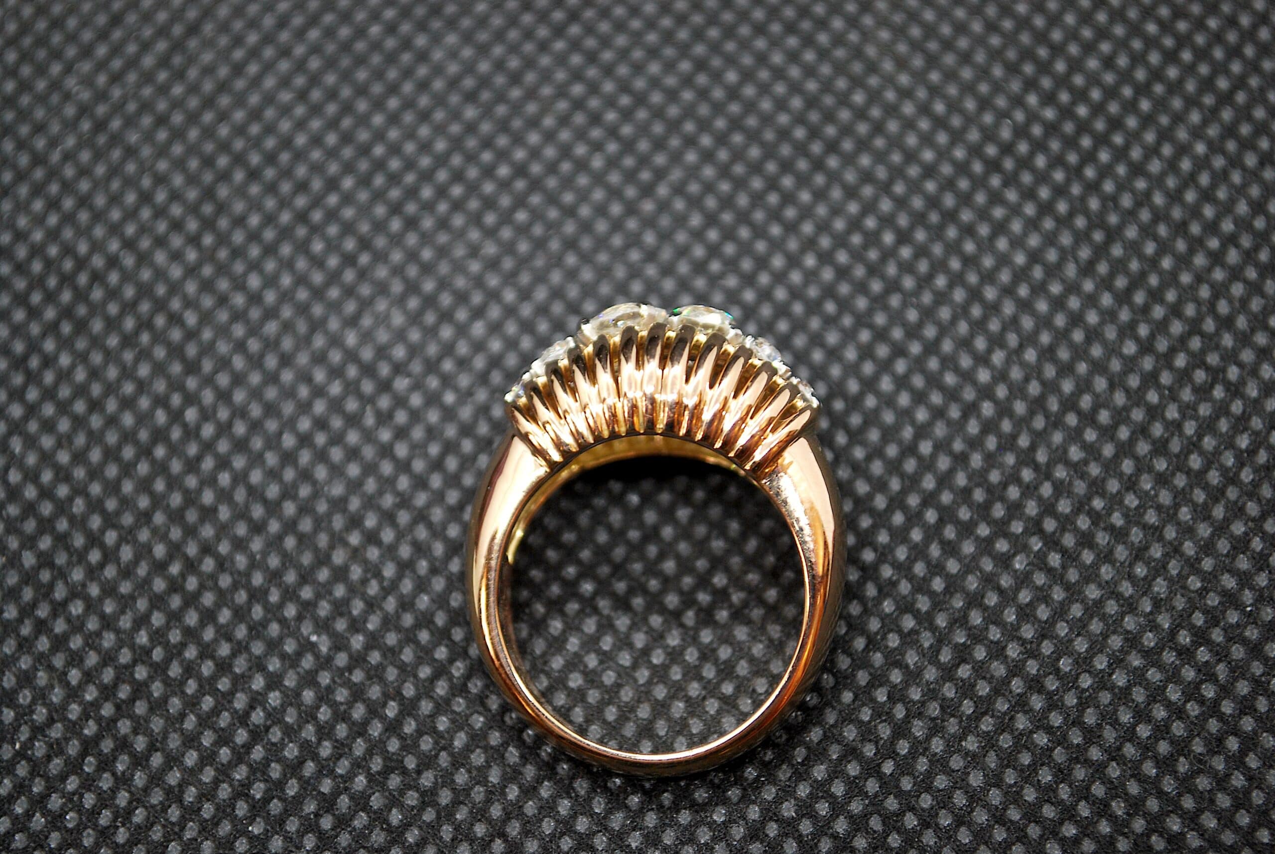 Vous adorez les bijoux vintage et art déco? Vous allez adorer cette sublime bague en Or Rose 750 millièmes sertie de Diamants taille ancienne. Ce bijou d'occasion a entièrement été vérifié dans notre atelier. Craquez pour cette bague d'occasion, mais comme neuve.