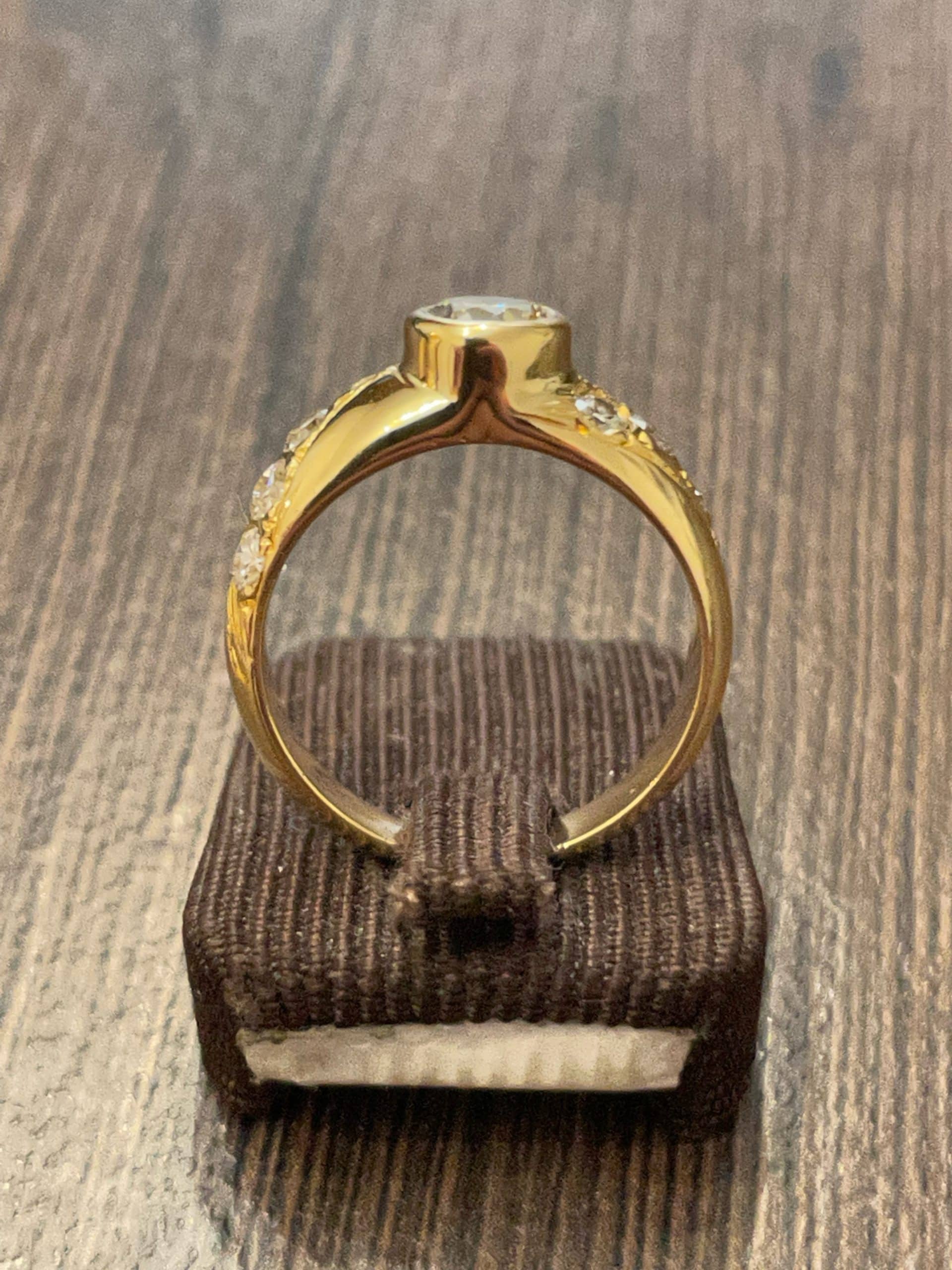 Bague solitaire d'occasion en OR Jaune 750 millièmes serti d'un Diamant d'environ 0,30 carat et accompagné de 8 Diamants de 0,05 carat chacun de couleur H et de pureté SI.