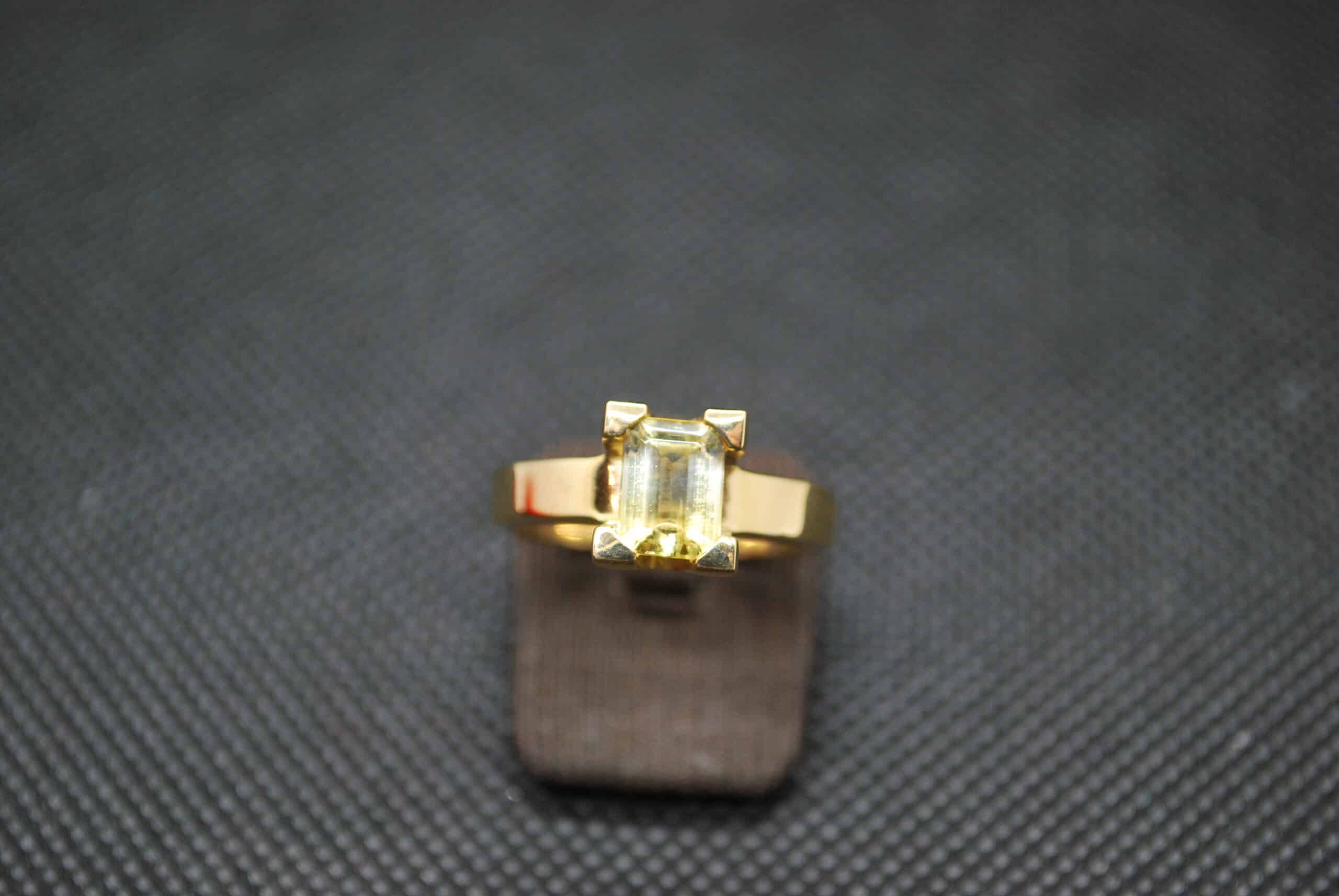 Création unique réalisée dans notre atelier, bague en Or Jaune sertie d'un Béryl Jaune taille émeraude . Son montage unique et moderne, permet de mettre simplement la pierre en valeur et de faire ressortir toute sa brillance. En optant pour ce bijou unique créé dans notre atelier, c'est faire le choix de vous démarquer avec bijou unique que vous ne verrez pas à toutes les mains. Sa monture moderne vous accompagner dans votre vie de tous ls jours et pour de longues années.