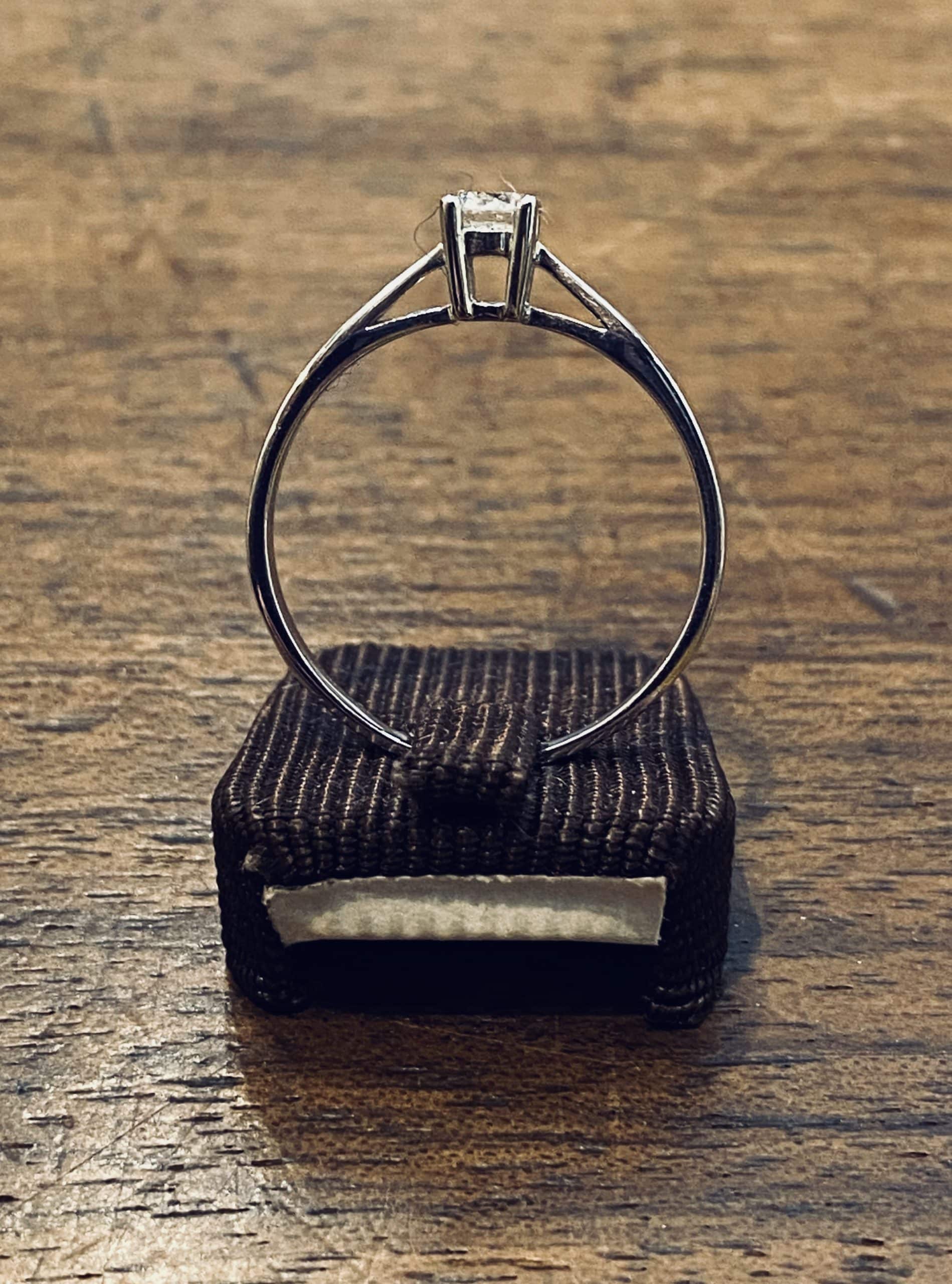 Trés beau solitaire en or blanc 750 millièmes serti par 4 griffes d'un diamant de 0,16 carats.