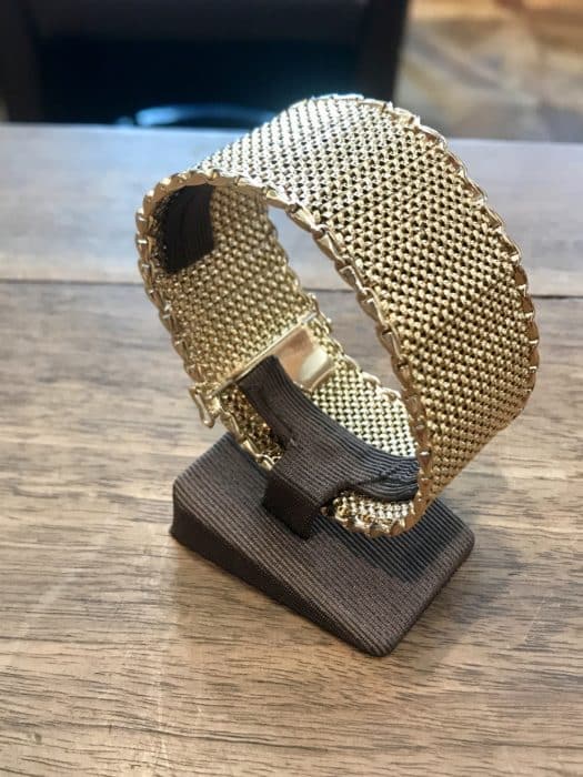 Magnifique bracelet "Manchette" d'occasion datant des années 60 en or jaune 750 millièmes. Il mesure 3 centimètres de large. Sont fermoir "Cliquet" et son huit de sécurité vous assure une tenue parfaite à votre poignet.