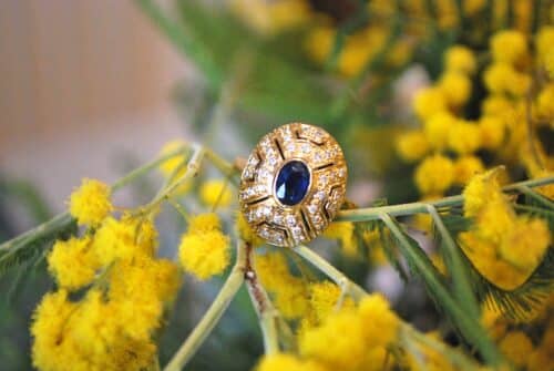 Bague d’occasion en Or jaune avec Saphirs et Diamants