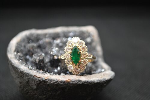 Bague d’occasion en Or Blanc émeraude et Diamants